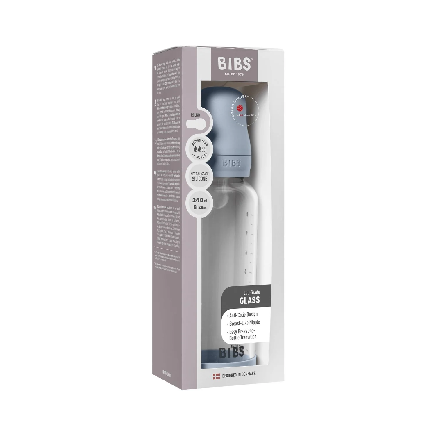 Bibs Baby Blue Glass Baby Flaske Round Silicone Medium Flow
